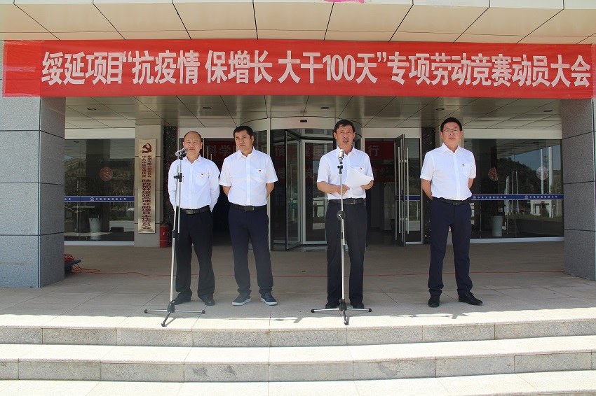 6月2日下午,綏延項目黨政工團召開“抗疫情、保增長,大干100天”專項勞動競賽動員大會,領導班子成員、各部門、各單位共計50余人參加。