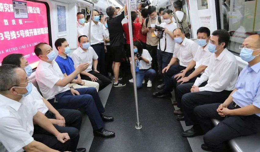 ▲長沙市委副書記、市長、湖南湘江新區黨工委書記鄭建新宣布長沙地鐵5號線正式載客初期運營