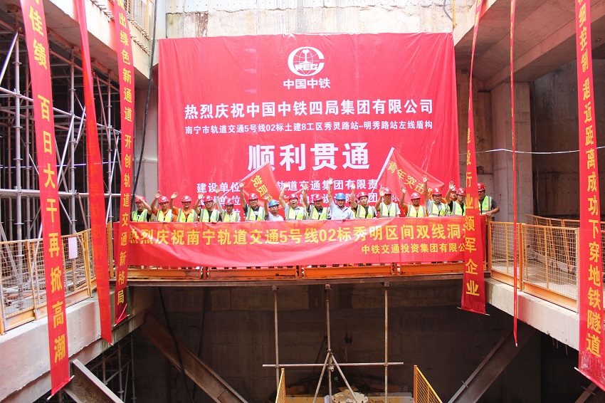 ▲秀—明區間左線貫通標志著南寧地鐵5號線02標全線“洞通”