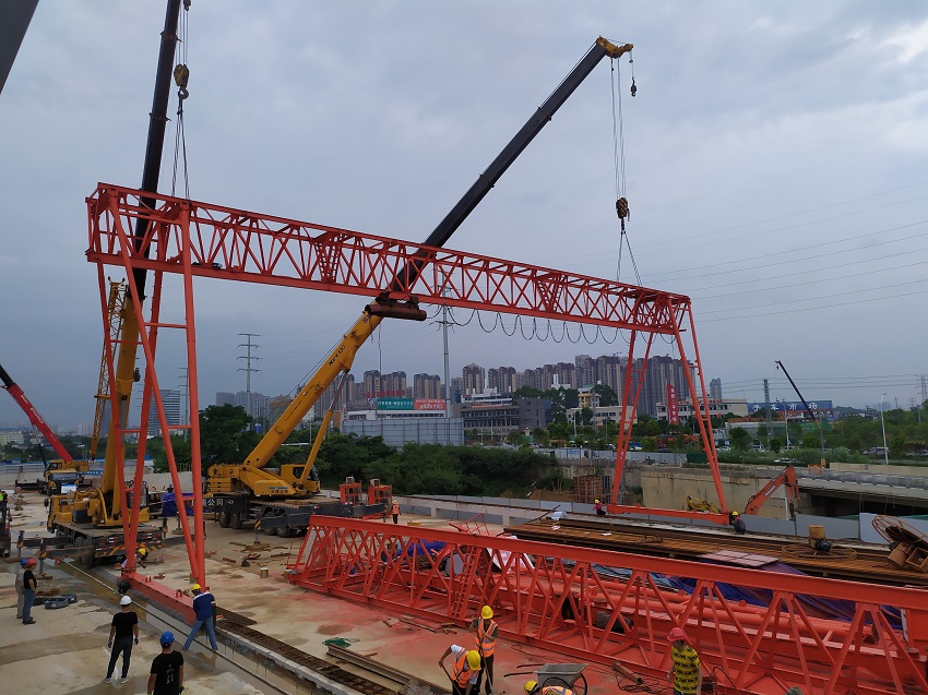 7月27日,隨著吊車的轟鳴聲,一臺鋪軌龍門吊緩緩升起,標志著金橋客運站鋪軌基地龍門吊正式架設。金橋客運站鋪軌基地是南寧地鐵5號線的鋪軌基地之一,建設之初場地存在高差,建鋪軌龍門吊走行線較困難,經過多次比選設計方案,最后選擇了“一邊通過高架橋、一邊通過下沉”的方式來消除高差。經過一個月建設,已完成鋪軌軌排井至末端的走行線安裝,正式開始架立鋪軌龍門吊,標志著鋪軌單位正式進入鋪軌。