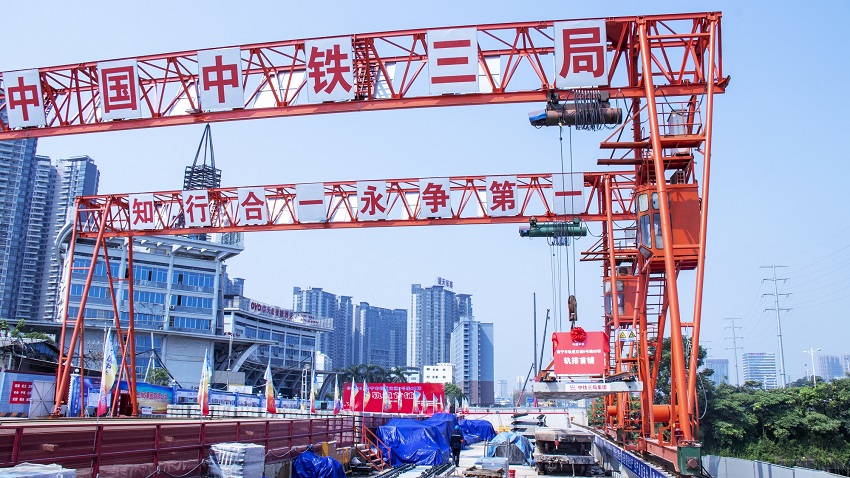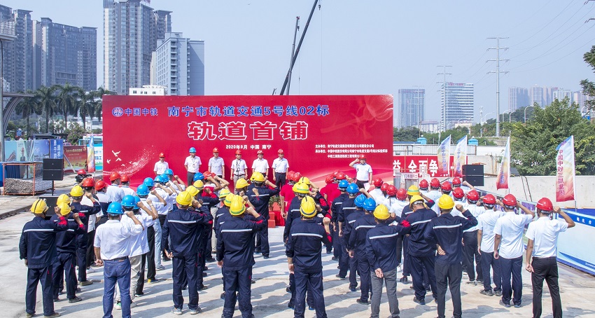 9月1日10時(shí)10分,在南寧地鐵5號(hào)線02標(biāo)工程機(jī)電9工區(qū)金橋客運(yùn)站鋪軌基地,軌道首鋪儀式現(xiàn)場(chǎng)彩旗飄揚(yáng),隨著“開(kāi)始鋪軌”一聲令下,一節(jié)25m軌排被龍門(mén)吊穩(wěn)穩(wěn)吊起,緩緩下降安放至隧道內(nèi),標(biāo)志著南寧地鐵5號(hào)線02標(biāo)工程正式進(jìn)入鋪軌大干熱潮。