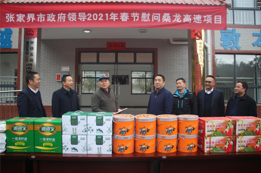 黃副秘書長還到項目施工現場,向堅守一線的建設者送上了水果、大米、食用油等慰問品,對建設者們為張家界經濟發展付出的辛勤勞動表示感謝。