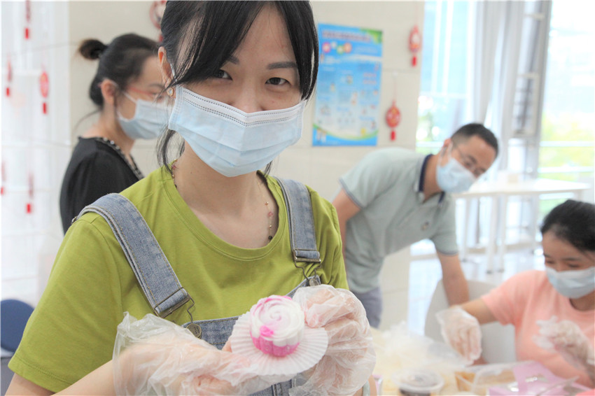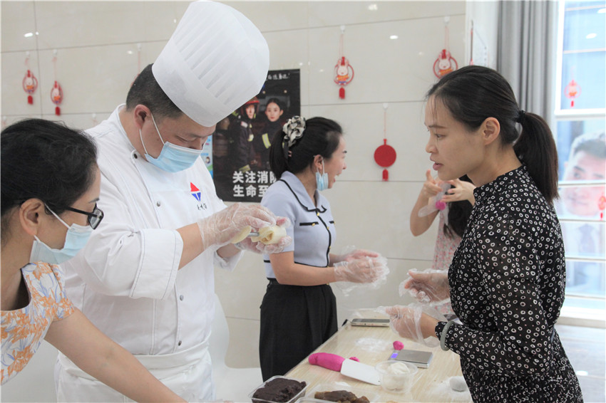 參加活動人員在專業(yè)烘焙老師的講解示范下,相互探討打月餅皮、揉餡、包月餅等環(huán)節(jié),積極動手揉面、搟皮、包餡、整形,充分體驗到了制作月餅的快樂過程,呈現(xiàn)出了溫馨、和諧、團圓的喜慶氛圍。