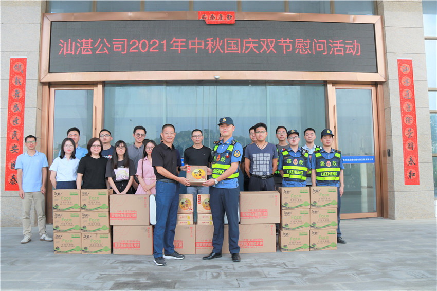 9月16日,汕湛公司組織開展了2021年中秋國慶“雙節(jié)”慰問活動,公司領(lǐng)導班子成員為職工送上了月餅等慰問品,并向公司職工送上了節(jié)日祝福,叮囑全體干部職工要嚴格遵守疫情防控各項規(guī)定,勿忘廉潔自律,堅守“底線”,不碰“紅線”。
